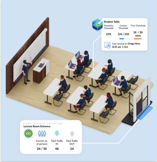 Computer vision allows schools to count the number of people in a single space automatically and with ease. The AI model can even be taught to differentiate between students and teachers, based on items of clothing or staff lanyards.