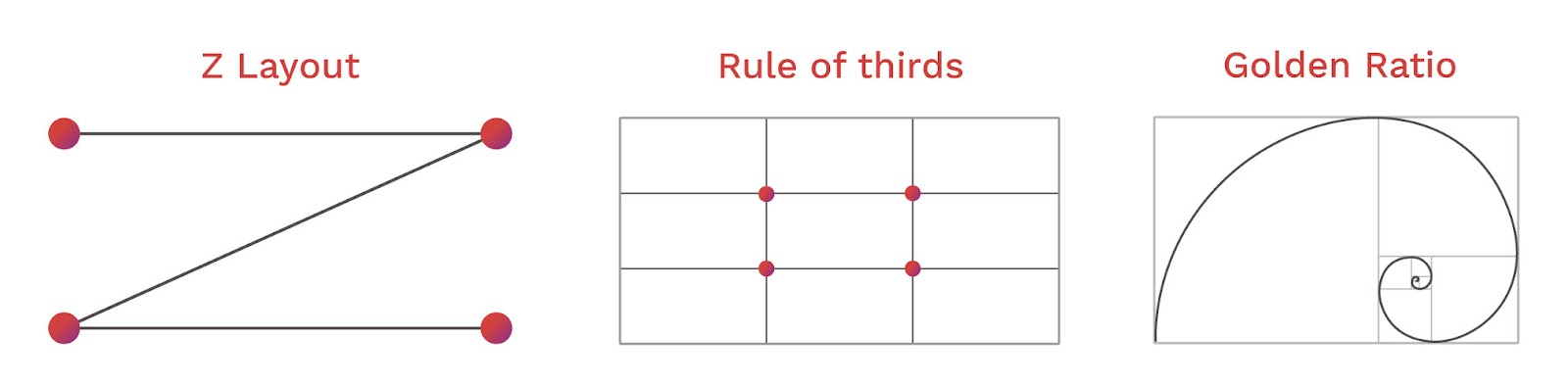 Make good use of design compositions such as the Z Layout, Rule of Thirds, and Golden Ratio to keep elements in the best real estate within your screen.